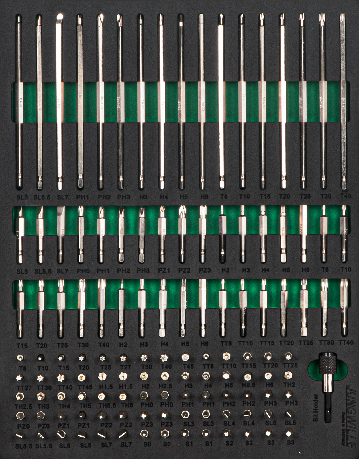 - Each drawer is pre-filled with matching tools and features smooth guidance and a sturdy lock.
